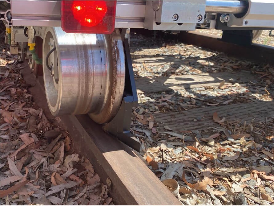 - UT trolley – while moving behind the vehicle in testing mode checks the alterations in track gauge (width) due to extending/retracting pneumatic system