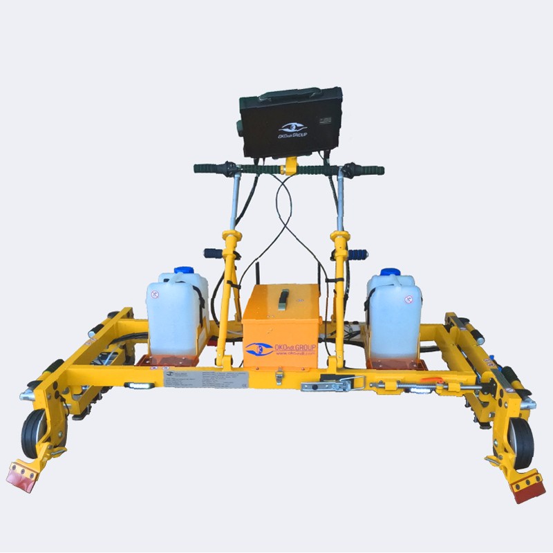 - The flaw detector is equipped with elastic flip-up rail surface cleaners which remove trash from the rail surface before the inspection.