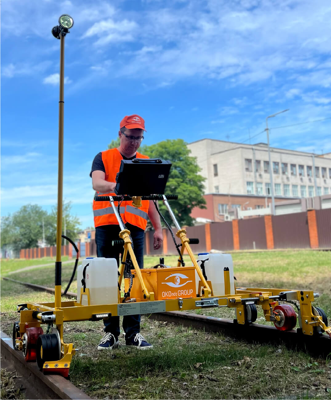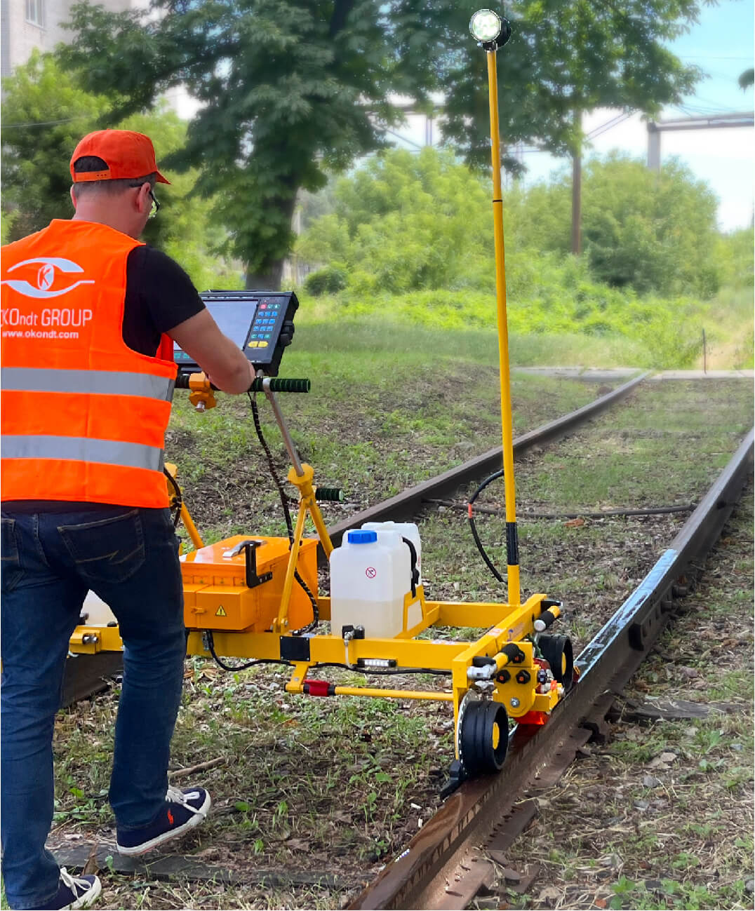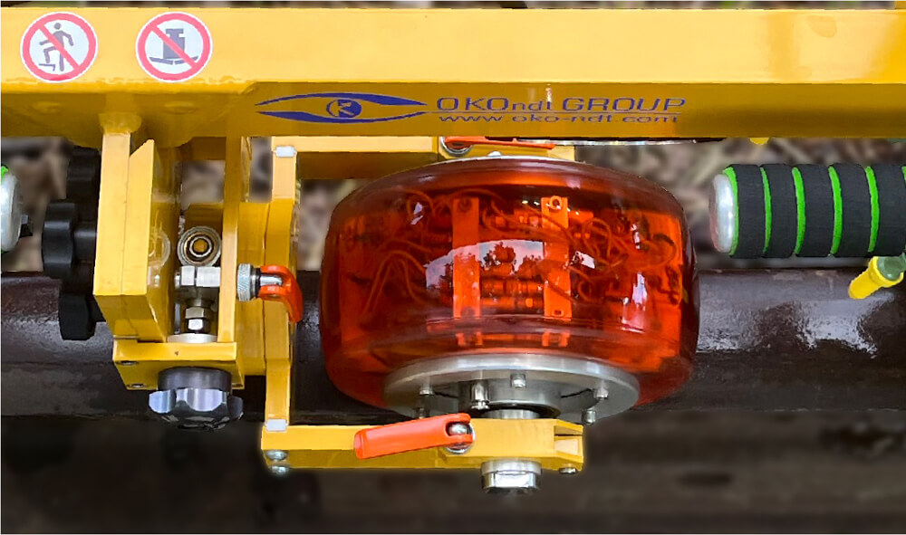 - Ergonomic, light and reliable design of the flaw detection trolley ensures testing of all existing rail sizes of the track (within 950 – 1676 mm).