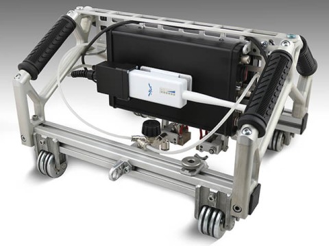 TOFD 2.2 PRO Scanner is compact and reliable equipment, which assures stable scanning results. Such NDT instrument is most often used as ultrasonic pipe testing equipment. Magnetic wheels and spring loaded probes carriers with self-positioning system ensure transducers stability on the object surface which results in good coupling necessary for testing results reliability. Scanner is easy to drive and doesn’t fall from the object even when upside-down. Scanner carries TOFD Ethernet module, Wi-Fi module, and rechargeable battery pack. Cases of TOFD module and battery pack are shockproof. All equipment has protection rating IP65. Scanner design ensures that at fall down, the main impact will come to the scanner structure elements saving electronics. Storage battery ensures 8 hours of TOFD 2.2. PRO system operation. But it can be replaced with a single hand in several seconds if necessary.